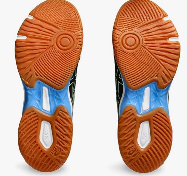 El diseño de la suela está optimizado para superficies de pista cubierta, ofreciendo un agarre sobresaliente en giros, deslizamientos y frenadas.